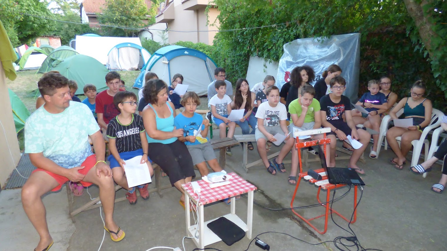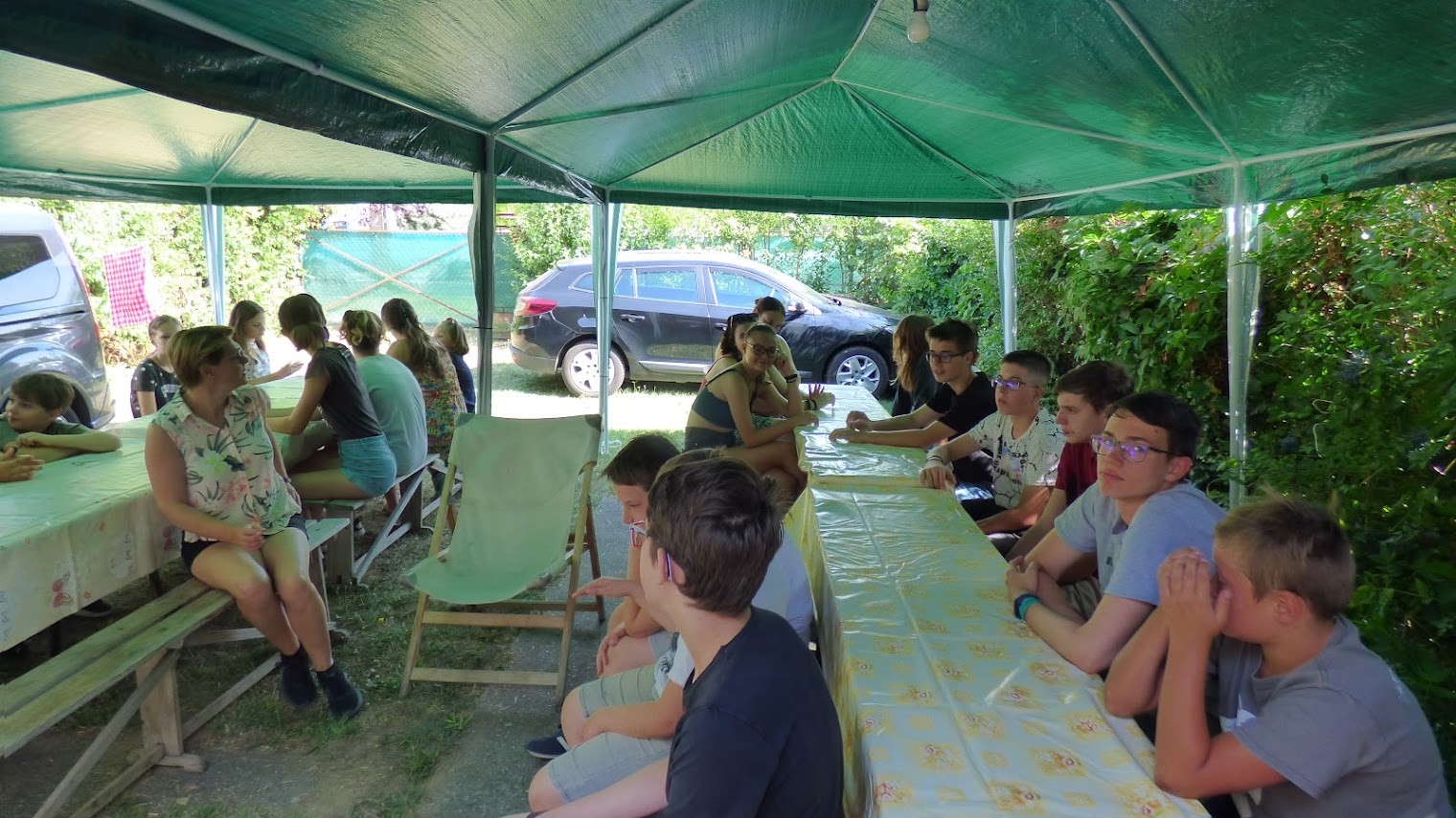A plébánia tulajdonában lévő ingatlanon valósult meg a plébániához tartozó családok közösségépítő együttléte a gyermekek hitoktatással egybekötött nyári táborozása.